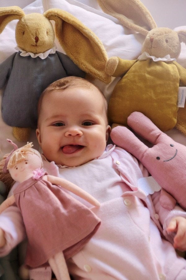 Ideal from birth, the cuddly toy is the baby's first toy. Thanks to its integrated rattle, it will be gently shaken by the child for his/her greatest happiness! It will also be cuddled, which will soothe the child and reassure him/her. Baby will never be able to do without it.