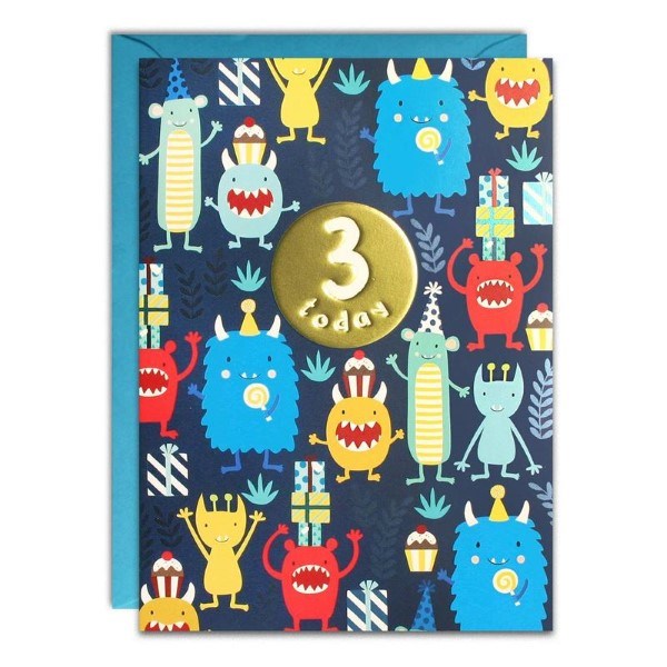 James Ellis - Age 3 Boy Monsters - Shakies 3rd Birthday Card